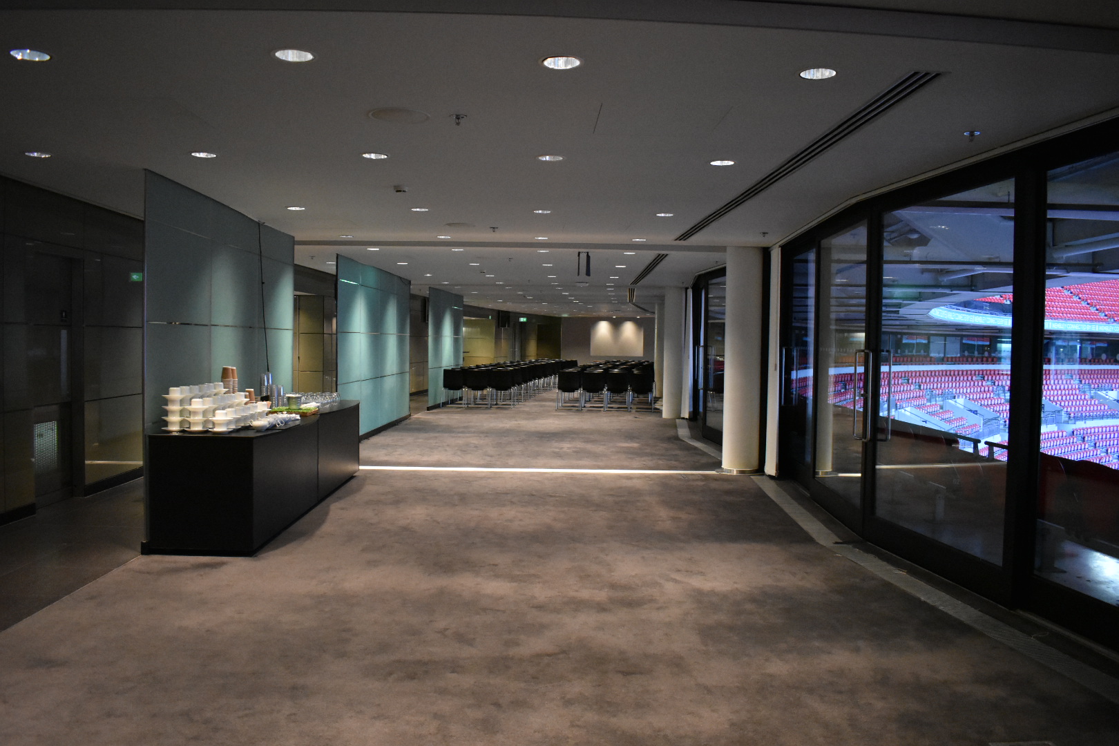 The full length windows provide panoramic views of the iconic Stadium Bowl, creating the perfect backdrop for creative and inspirational events - be they small meetings, presentations or something less formal such as a cocktail reception or private dinner.